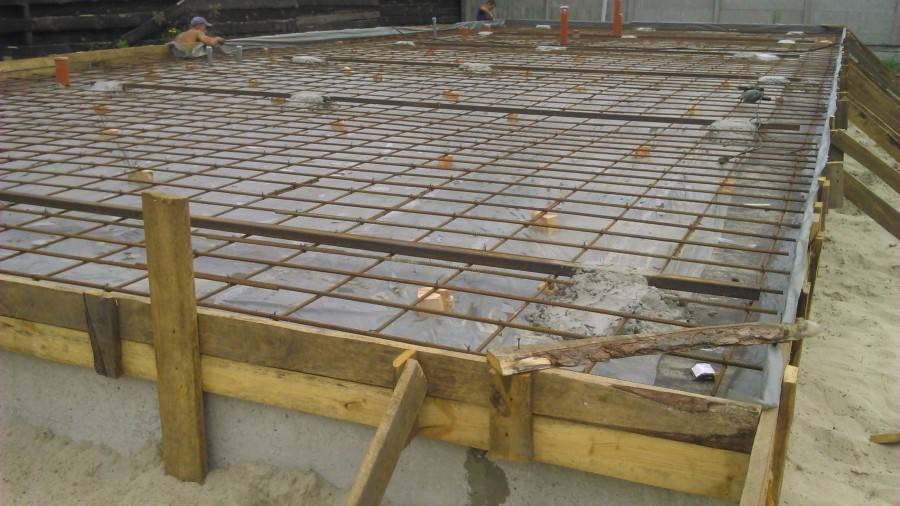 Металлический материал настилают с нахлестом в 1–2 ячейки, пластиковую арматуру — не менее 10 см. В первом случае соседние участки обязательно фиксируются проволокой. При необходимости (недостаточном диаметре прутьев) укладывается второй слой, но лучше избегать таких ситуаций и подбирать правильные параметры.