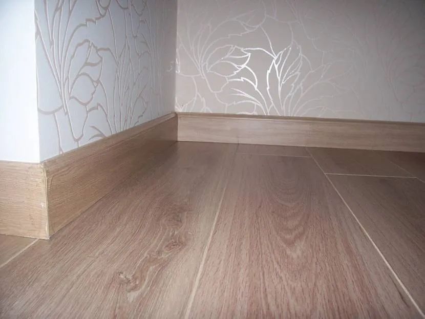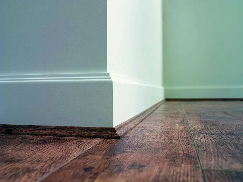Ламинат — для ламината лучше всего подойдут ламинированные варианты широких полиуретановых плинтусов, их основа покрыта лаком, что придает особенности и шарма всему интерьеру.