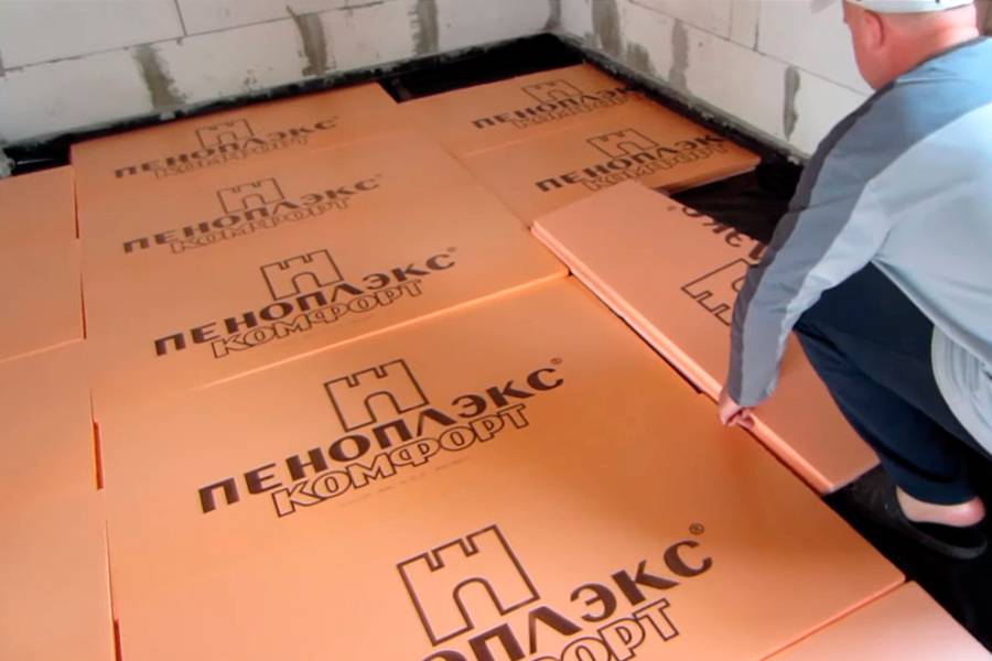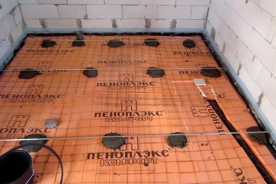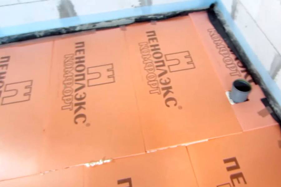 Укладка слоя утеплителя проводится на гидроизоляцию, и оба слоя загибаются на стены. Для утепления используют пенопласт или жесткую минвату.