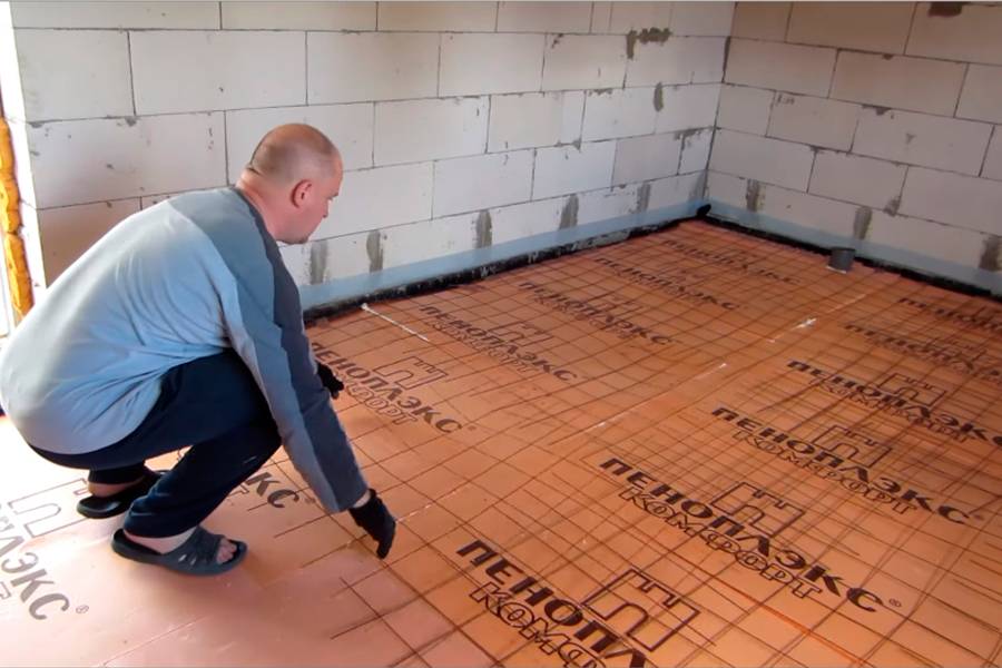 - Укладка изолятора на сухую стяжку. В этом случае требуется дополнительная чистовая отделка бетона.