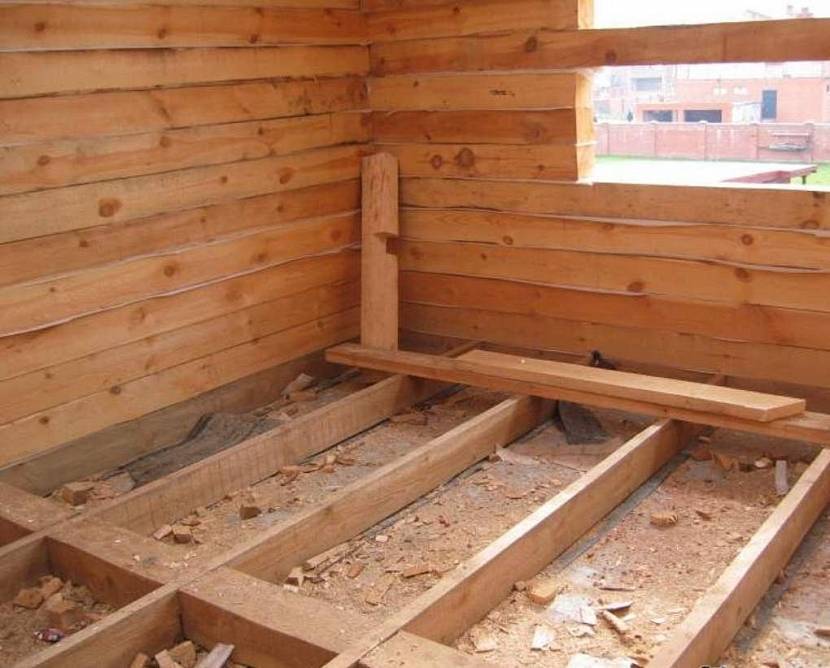 Таким образом, половые доски устанавливаются ниже обработанных брусьев.