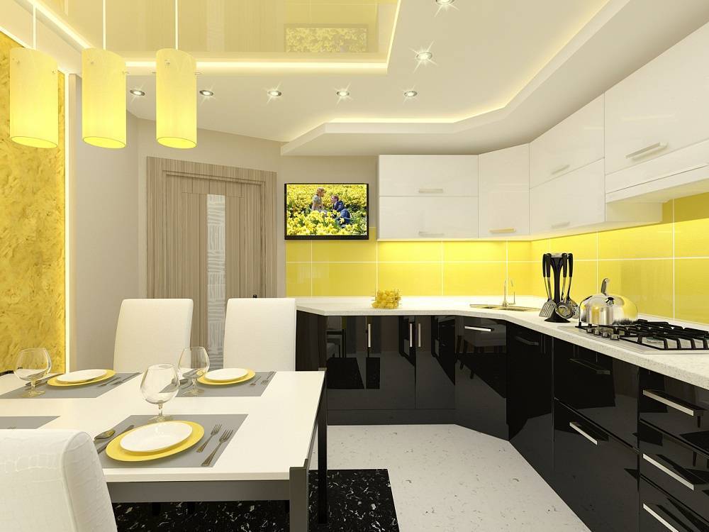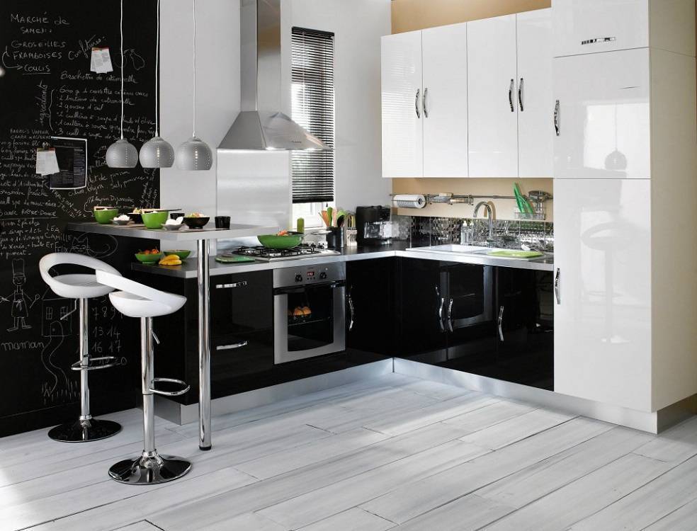 Для создания уникального и нестандартного интерьера можно использовать дополнительные цвета, которые способны сгладить высокий контраст гарнитура и добавить экзотическую и яркую нотку монохромной комбинации.