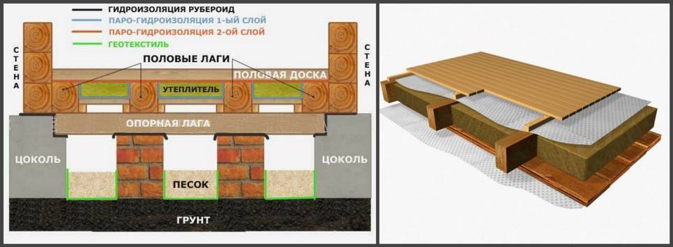 Нередко в этой роли используется обмотанный рубероидом ростверк. но это могут быть и брусья, составляющие нижнюю обвязку.