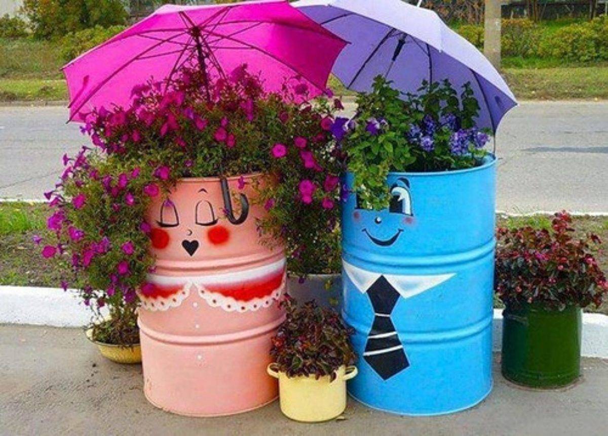 Пластиковые бочки более функциональны, поскольку не предназначены для хранения горюче-смазочных материалов. Кроме того, пластик легко режется и гнётся, что дополнительно расширяет возможности его преобразования в интересные поделки для дачи.