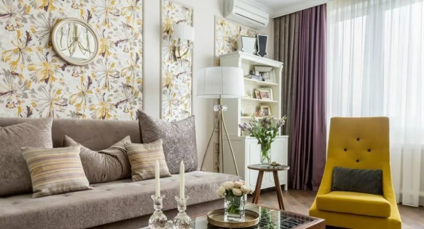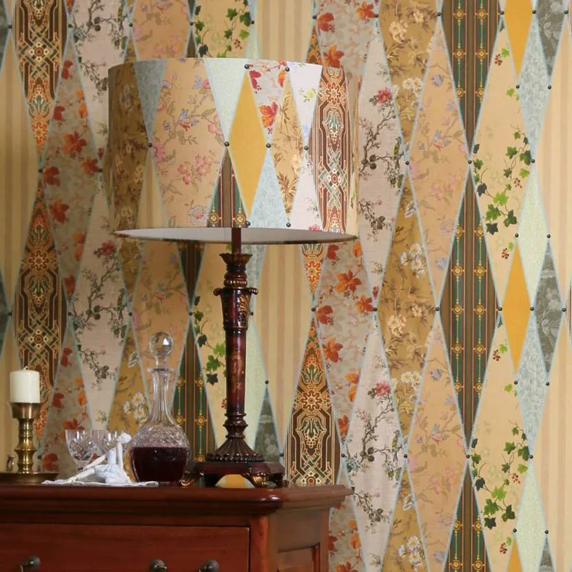 Абажур для гостиной, сочетающийся с рисунком на обоях