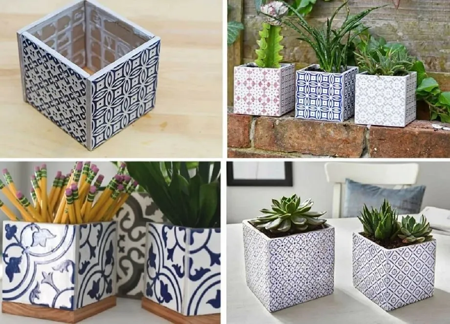 Цветочные горшки редко сочетаются с основным дизайном помещения, либо вовсе выглядят невзрачно и потрепано, а хорошую вазу по доступной цене очень трудно найти. Если в вашем доме такая же ситуация, то срочно берите плитки, клей и беритесь за декорирование.
