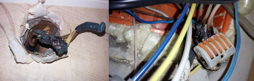 Со временем контакт скрутки (не сварной или опрессованой) ослабевает, в ней увеличивается сопротивление, и она начинает греться. Когда увеличивается зазор между скрученными проводами, контакт начинает подгорать. Вы же можете просто наблюдать, как время от времени мерцает лампочка. В скрутке также возникают так называемые «вихревые токи», которые приводят к сбою светильника. С клеммой может быть похожая ситуация, только здесь ослабляется контакт на винте или на пластине (в плоскопружинных зажимах).