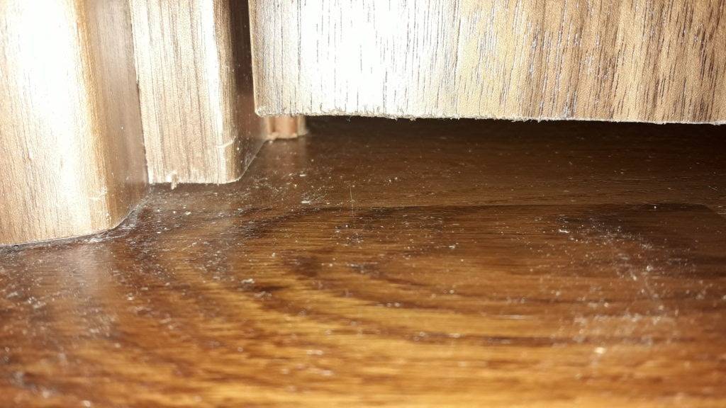 При такой очередности понадобится чуть больше сноровки и умения, чем при первом варианте замены. Также этот вид ремонта более затратен, а результат может не оправдать ожидания. Если при замене ламината не угадать с уровнем, на который поднимется пол, то двери будут задевать доски и тереться об них. Возможно появление и других видимых огрехов (зазоров, щелей, перепадов по высоте между покрытием в разных комнатах).