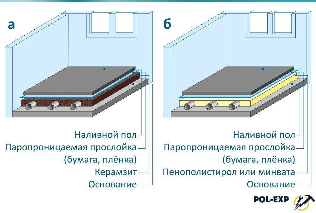 Внимание! Цементные составы используют в любых помещениях, в том числе – с высоким уровнем влажности. Допустимая толщина цементных смесей – 5 см. Гипсовые составы сохнут намного быстрее, поэтому допустимая толщина заливки — до 10 см