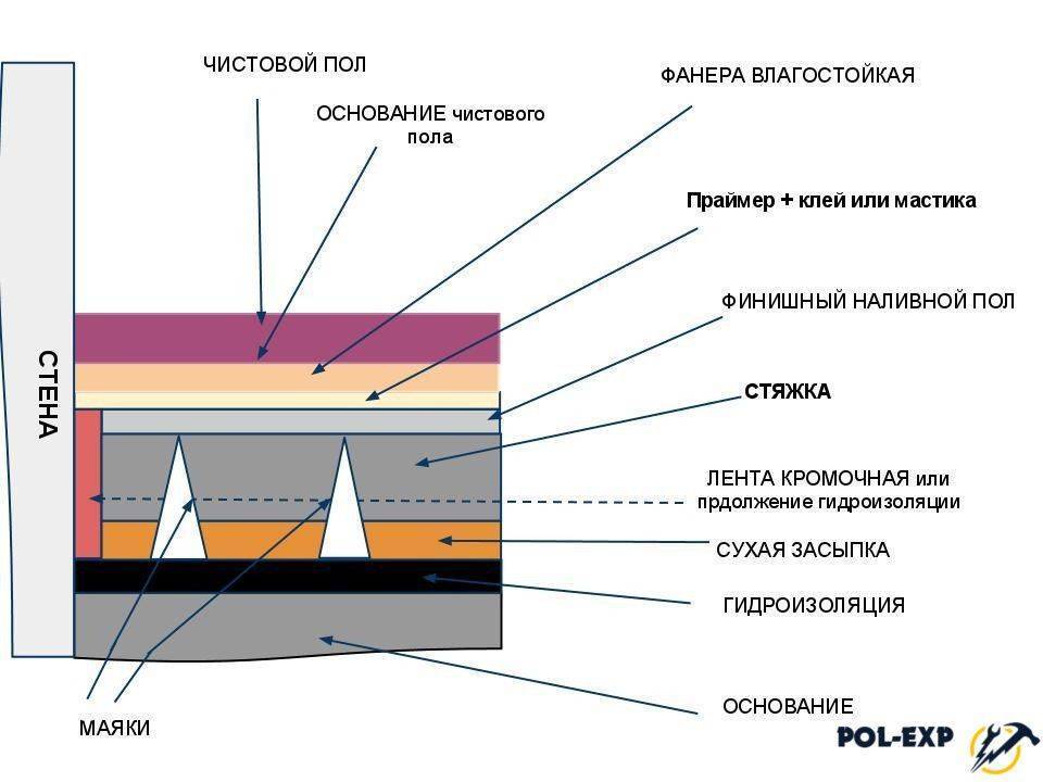 Технология монтажа наливного пола предусматривает применение следующих материалов: