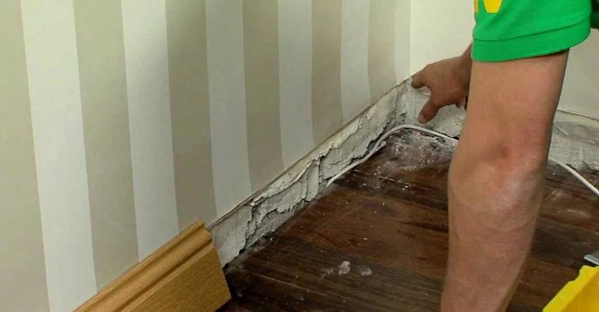 Чтобы не повредить плинтус, его демонтаж проводится с места расположения последнего гвоздя