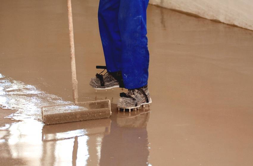- приготовить смесь и вылить ее на пол, распределив при помощи рейки-правила.
