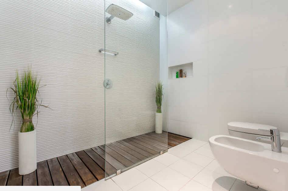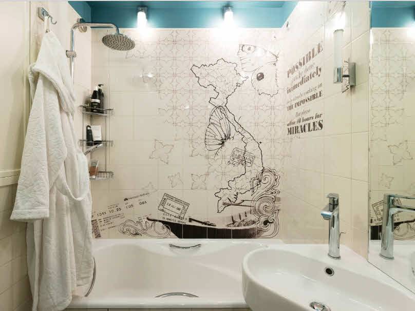 Однако нужно учитывать, что белый цвет может вызвать чувство холода и отсутствия уюта, именно поэтому следует уделить особое внимание акцентным стенам. Помимо этого, однотонную плитку следует довольно часто убирать (мыть, протирать) так как на ней видны даже самые незначительные грязевые, мыльные пятна или потеки.Голубые и зеленые тона