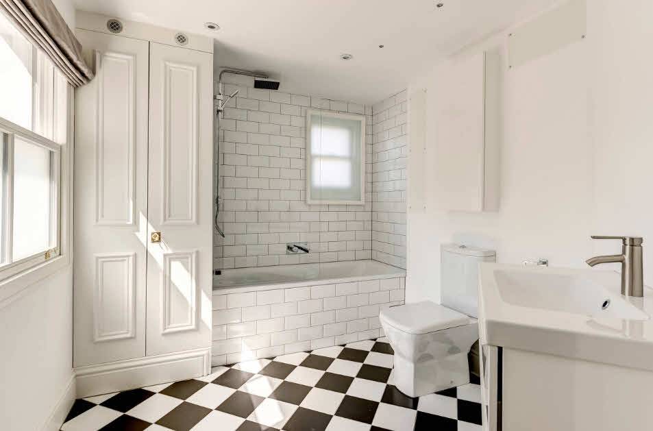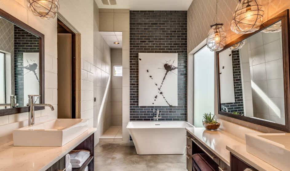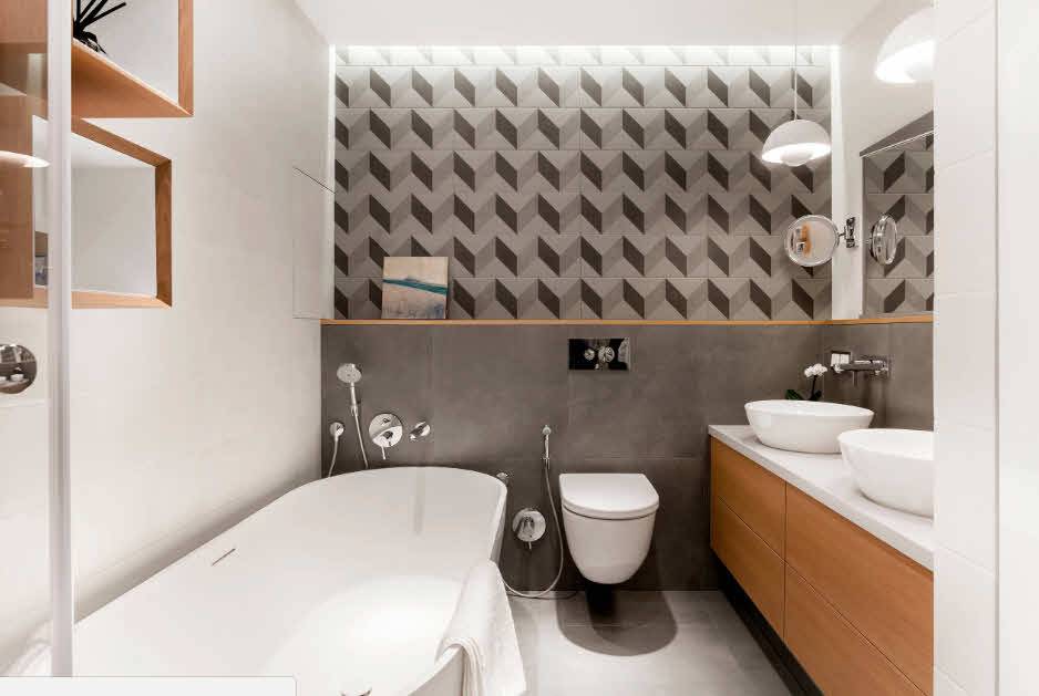 Важным моментом при укладке плитки является ее ориентация: для визуального увеличения высоты комнаты нужно остановиться на вертикальном варианте укладки. Полы же более выгодно для увеличения пространства выкладывать по диагонали.