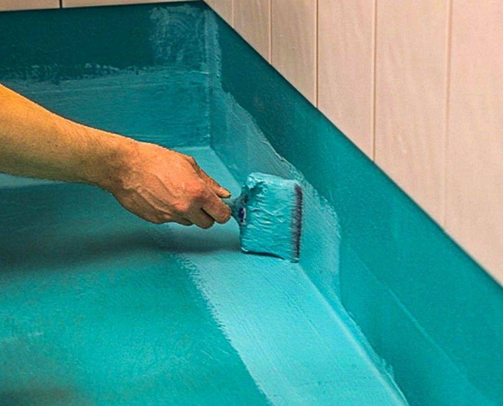 Вокруг умывальника и ванной для предотвращения образования сырости на стенах следует увеличить высоту нанесения гидроизоляционного состава до семидесяти сантиметров. Толщина слоя должна составлять около двух миллиметров.