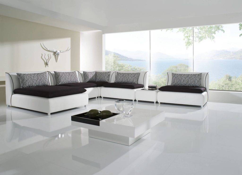 Белые покрытия необходимо подчеркнуть. Для этого их оттеняют и выделяют при помощи черного или темного плинтуса. Использование такого способа выделения позволяет разграничить пол, чтобы он не сливался с помещением при использовании белых стен. Чтобы усилить эффект черных плинтусов необходимо использовать такую концепцию и для иных элементов интерьера.