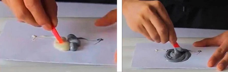 Большинство производителей рекомендуют выполнять этот процесс в перчатках чтобы состав не попадал на кожу рук. Разминать необходимо в зависимости от количество используемого состава от 1 до 5 минут пока состав не станет пластичным и однородным.