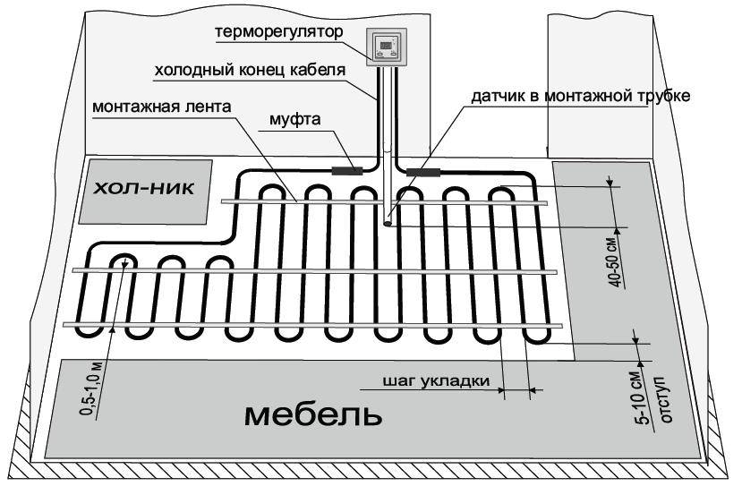 По этой же причине нельзя монтировать резистивный кабель в местах, где будет стоять мебель.