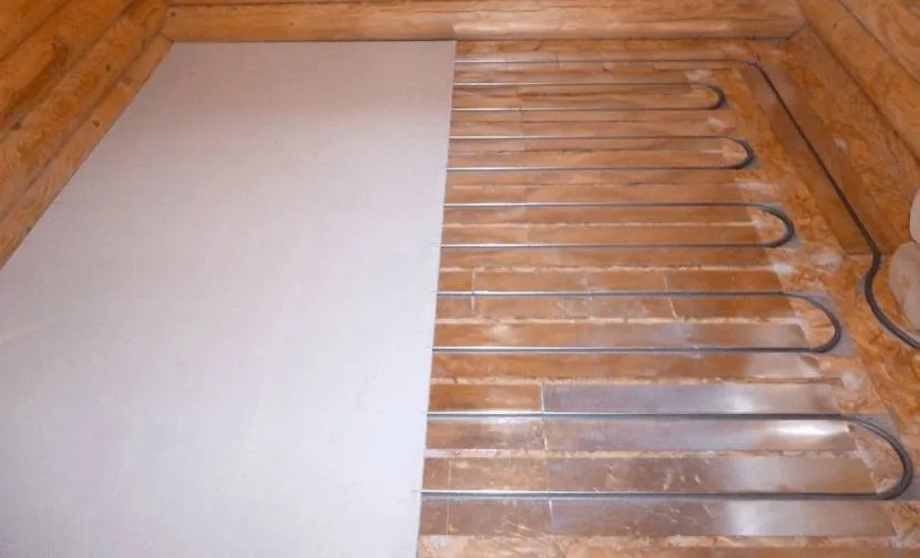 Также, если используются листы ГВЛ для пола, допускается укладка на них системы подогрева полов, как электрической, так и водяной. Под листам остается достаточно места для укладки инженерных коммуникаций. Укладка выполняется по сухой технологии, что значительно экономит денежные средства владельца и делает стандартное перекрытие более теплым. Основание под укладку напольного покрытия при этом очень гладкое и может быть использовано без дополнительной обработки.