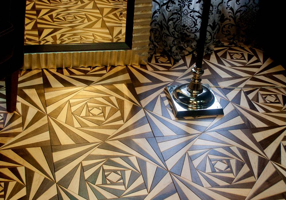 Отметим, что художественный ламинат часто выпускается в виде квадратных плиток, а не прямоугольных панелей. Такой вариант предпочтительнее, поскольку расход будет меньше.