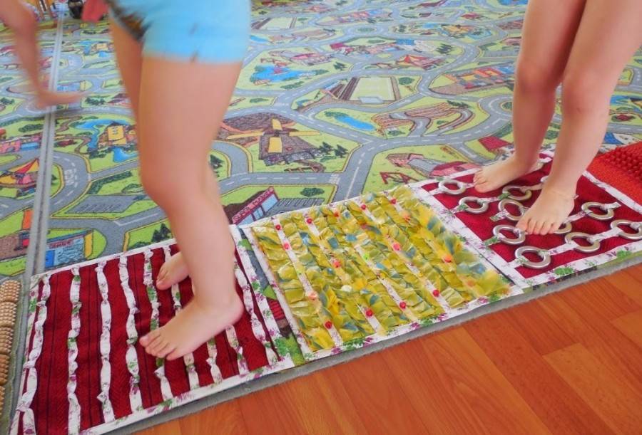 Самодельные коврики-половики выполняются в основном из натуральных растительных текстильных и трикотажных материалов: старых носильных вещей, пряжи, ниток, каната (крученой веревки) или троса (веревки плетеной). Синтетику в ковриках для внутреннего применения следует использовать только предназначенную для носильных вещей из-за того же статического электричества; оно, через ноги босые или в тапочках, очень плохо влияет на здоровье. К имитации натуральных минеральных материалов мы еще вернемся, а о твердой/упругой органике довольно сказанного выше.