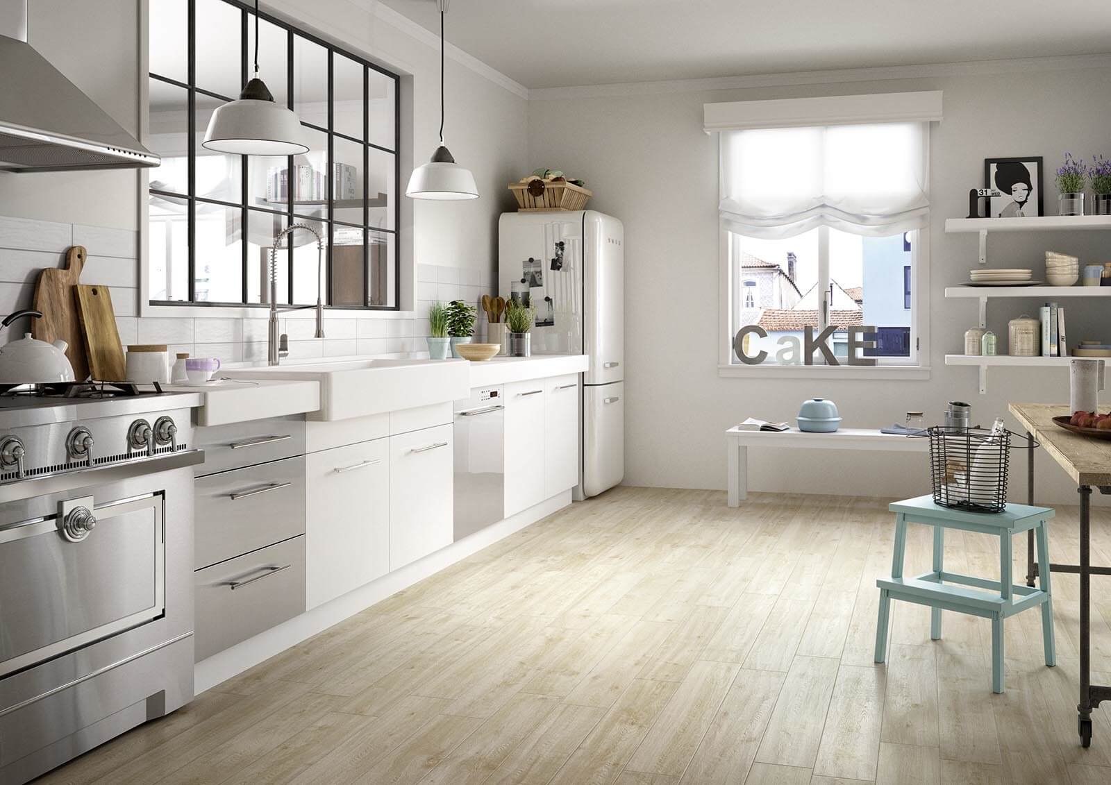 Пол на кухне должен соответствовать цвету интерьера, а также гармонировать с другими комнатами. Поэтому хорошим и все более используемым решением является укладка во всем доме или квартире одним материалом. Выбирая цвет, помните, что кухонный пол должен быть универсальным и достаточно вневременным, чтобы он выглядел хорошо при смене мебели или аксессуаров, и, несмотря на продолжительность эксплуатации, все равно радовал своей безупречной красотой.