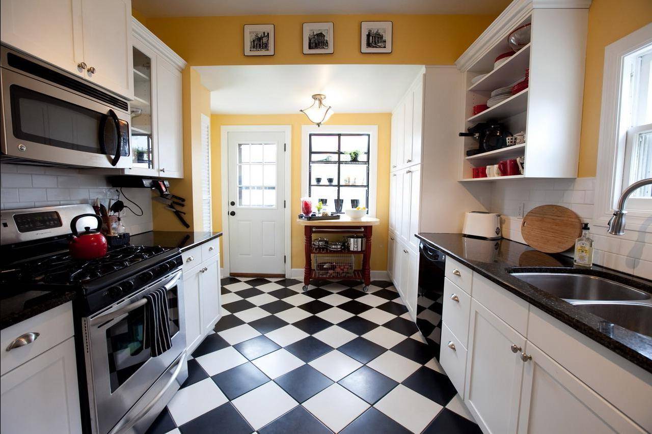 Вы не можете выбрать какой-то один цвет кухонного пола? Может быть, в этом случае вам понравится идея сочетания белых и черных досок, расположенных, например, по французскому, венгерскому или традиционному рисунку елочкой. Способ укладки пола в елочку теперь снова очень модный, и выглядит стильно. Может использоваться как в современных, так и в традиционных интерьерах. Такой пол придаст интерьеру любой класс и элегантность. Рассмотрите вариант шахматной доски, которая дает практически неограниченные возможности, когда дело доходит до идеальных интерьеров кухни.