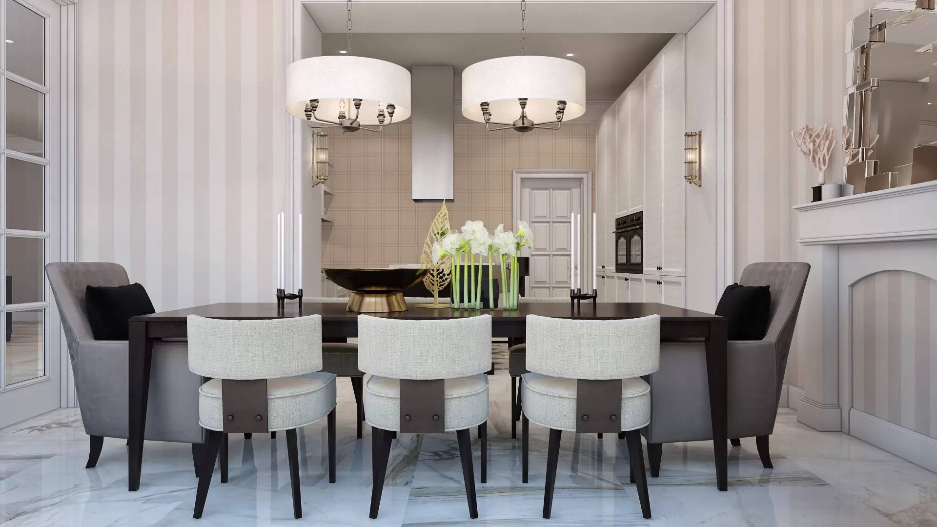 Размеры стола зависят от того, сколько человек за ним будут питаться одновременно – на одного достаточно ширины 0,6-0,7 м, глубины около 0,45 м. Стандартная высота конструкции – 0,72 м, допустимая – 0,7-0,77 м. Когда места катастрофически не хватает, столик делают складным, откидным, выдвижным, трансформируемым, а компактный отдельно стоящий – снабжают колесиками. Стулья должны соответствовать столу не только по высоте, но и по дизайну. Ширина такого посадочного места около 0,5 м, глубина – 0,4 м, максимальные габариты стульчика, оснащенного подлокотниками – 0,75 м.