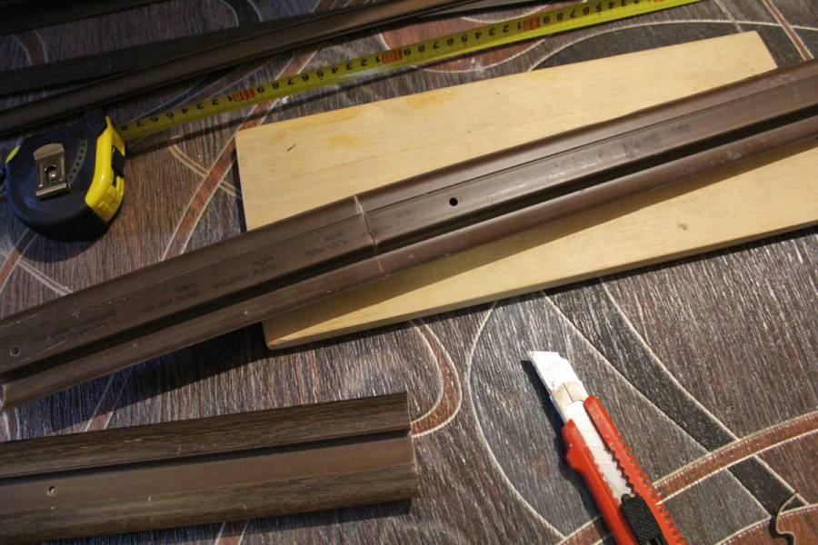 Отрезаем плинтус нужного размера обычным канцелярским ножом