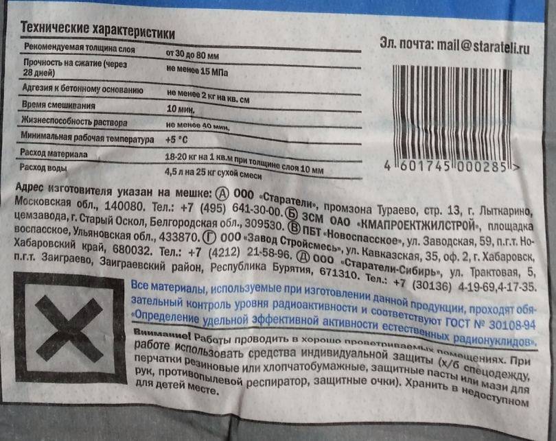 - срок изготовления. При соблюдении всех правил хранения сухая смесь пригодна от полугода до года (производители всегда указывают эту информацию на упаковке). По истечении данного срока состав теряет свои качества;