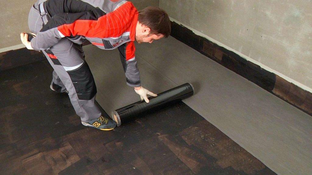 Гидроизоляцию устраиваем на кухне и в санузле. На неё при надобности накладываем шумоизоляцию.