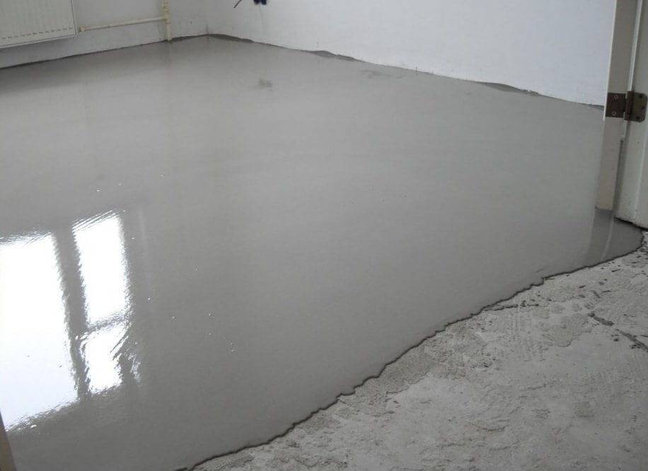 - Довольно часто в строительстве применяют самовыравнивающиеся быстросохнущие смеси, которые являются хорошей альтернативой бетонному раствору. Для надежности, слой такой стяжки должен составлять не менее 3 см. Передвигаться по этому покрытию можно уже по прошествии нескольких часов, а приступать к дальнейшим работам с полом – через 3-4 суток.