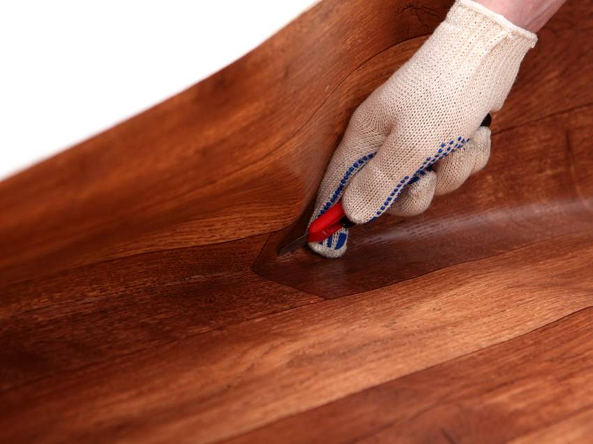 Фрагменты линолеума с царапинами и механическими повреждениями требуют замены их заплатами