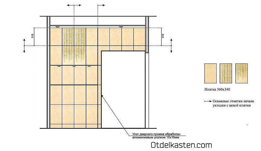 Укладку надо начинать с видного при открывании двери угла, постепенно переходя в самый дальний. Это позволит сделать незаметными глазу подрезанные куски плитки, без которых никак не удастся обойтись.