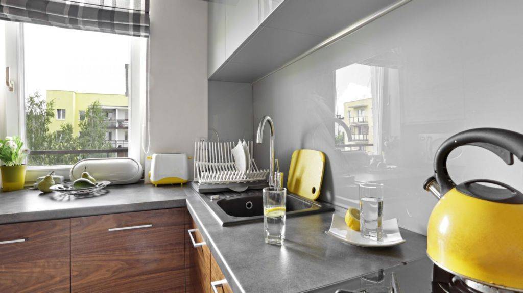 Лист стекла, прикрученный к стене между кухонными шкафами, в настоящее время является очень модным решением. Если вы хотите покрыть неприглядные плитки, лучше всего выбрать матовое стекло или с рисунком. Однако, если старые плитки имеют свое очарование и вы хотите подчеркнуть его, вас может соблазнить прозрачное стекло.