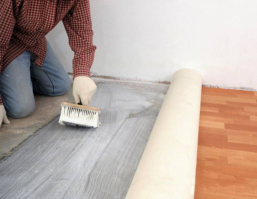 В случае, когда линолеум прочно соединен с черновой площадью,