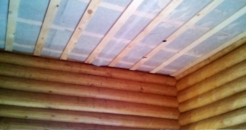 Первые этапы отделки потолка выполняются своим чередом. Деревянную поверхность очищают, обрабатывают антисептиками и антипиренами, монтируют коммуникации. Затем потолок гидроизолируют и укладывают на него утеплитель.