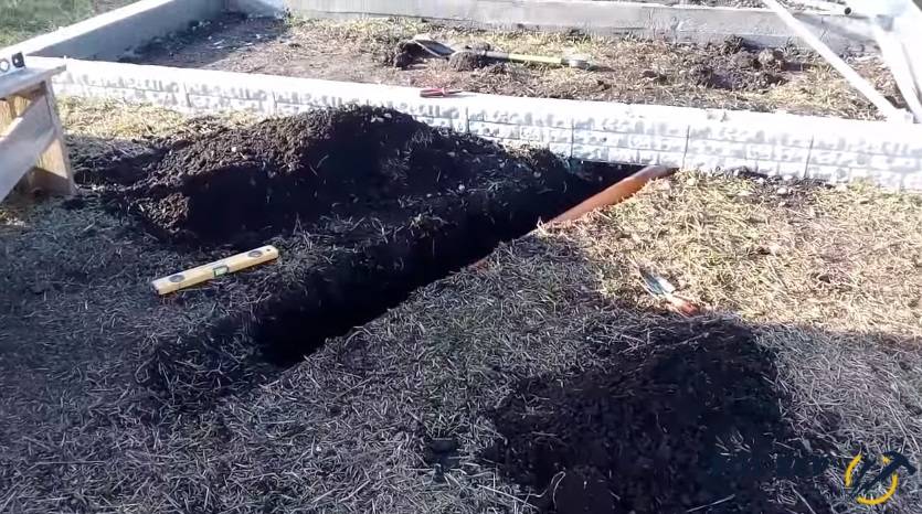 - такой способ прокладки позволяет устроить в лотке сразу несколько труб – для канализации и водопровода;