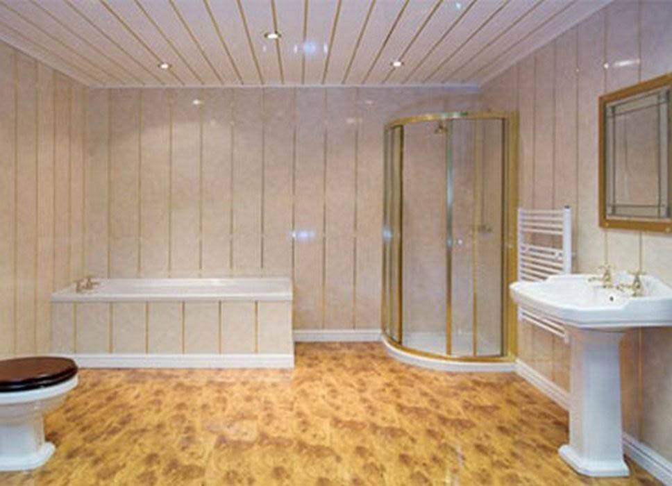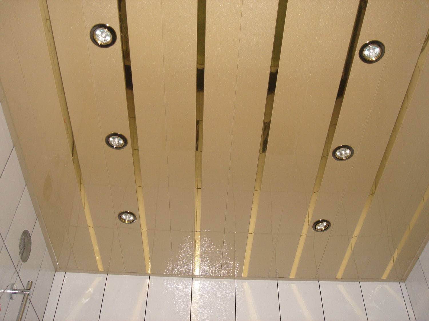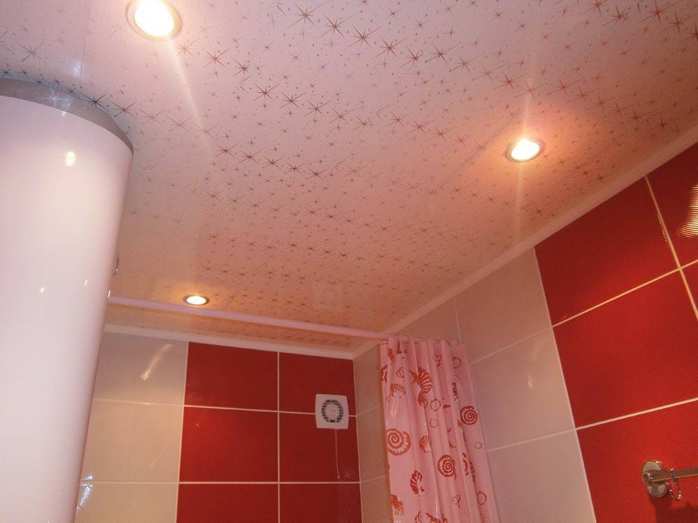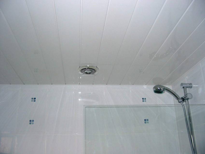 На фото – потолок из пластиковых панелей в ванной комнате с листами правильной толщины.