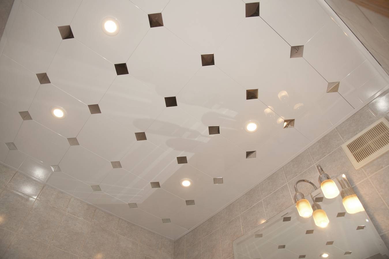 Всем перечисленным требованиям отвечает вариант дизайна, когда у вас имеется потолок в ванной из пластиковых панелей. Этот материал позволяет решать поставленные цели и задачи комплексно.