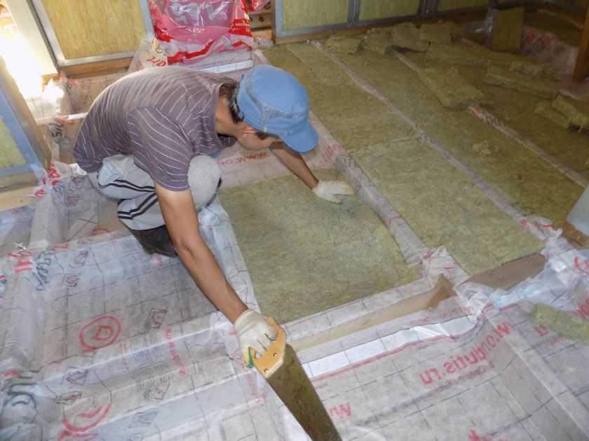 - чтобы изоляция легла в один уровень с полом, необходимо сделать вырезы для утолщенных участков.