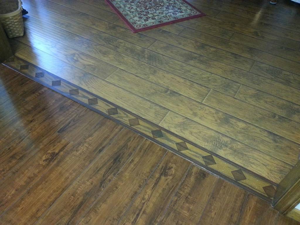 Если нужно сделать переход ламинат-ламинат, то процедура монтажа будет отличаться. При этом стыковка получится ровной. В случае с плиткой возможно создание различных линий и геометрических форм. Но проделать самостоятельную такую работу достаточно сложно.