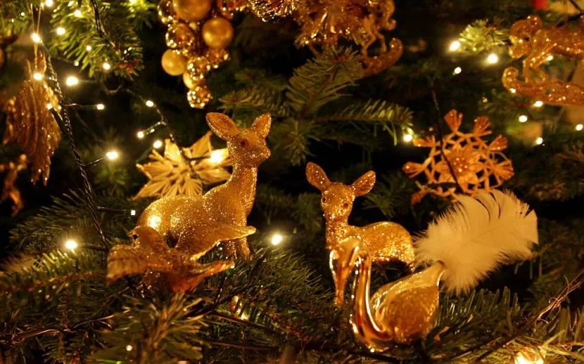 - Большие украшения обычно вешают ближе к центру дерева, чтобы придать ему большую глубину, украшения поменьше — по направлению к концу веток.