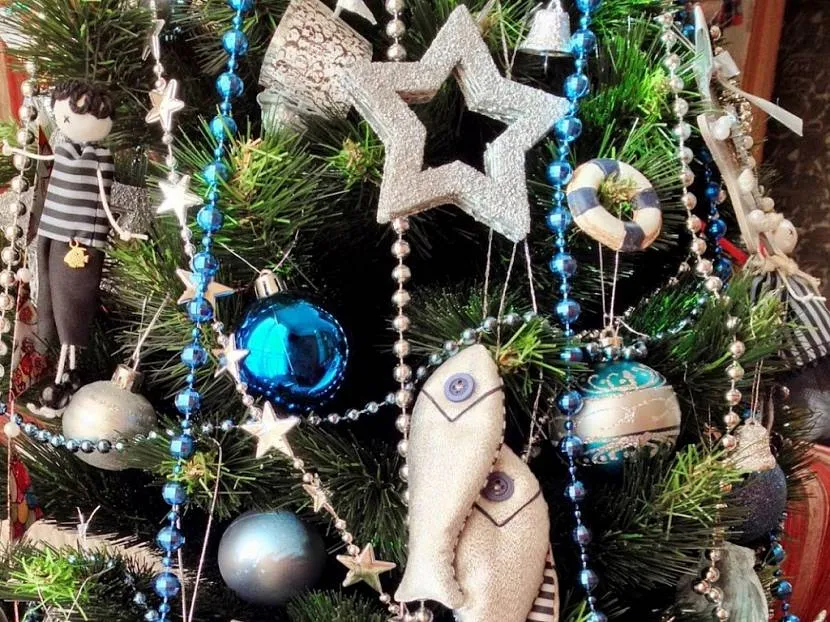 Когда холодно и снежно, и хочется представить себя на пляже, всегда можно оформить главное дерево Нового года в стиле «Море-море». Оно же задаст тему для вашей оригинальной вечеринки. На ёлку можно повесить морские звёзды и коньками, маленькие парусники ленты-волны, или любые сувениры, привезённые с побережья.
