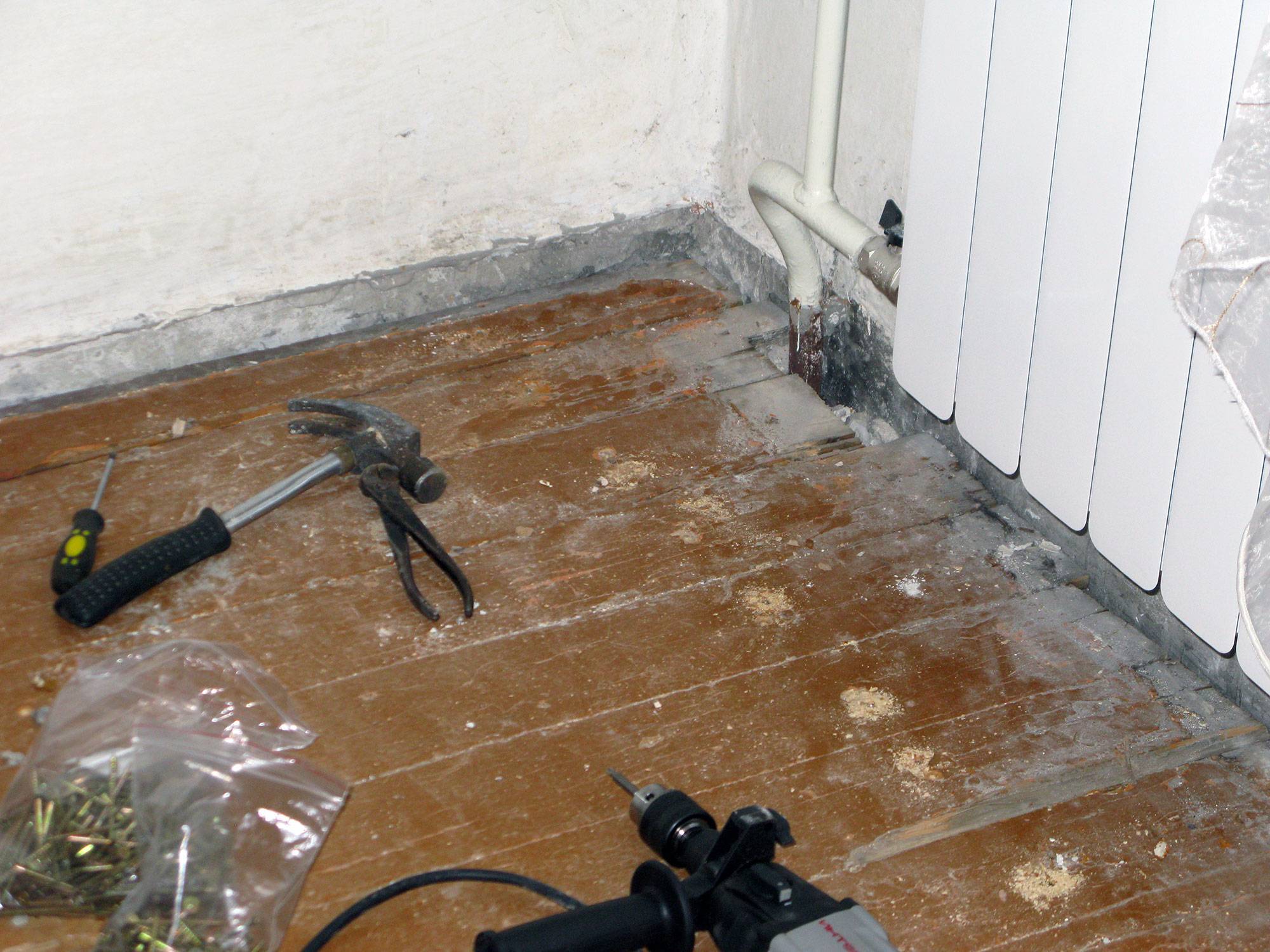 Обшивка деревянного пола фанерой