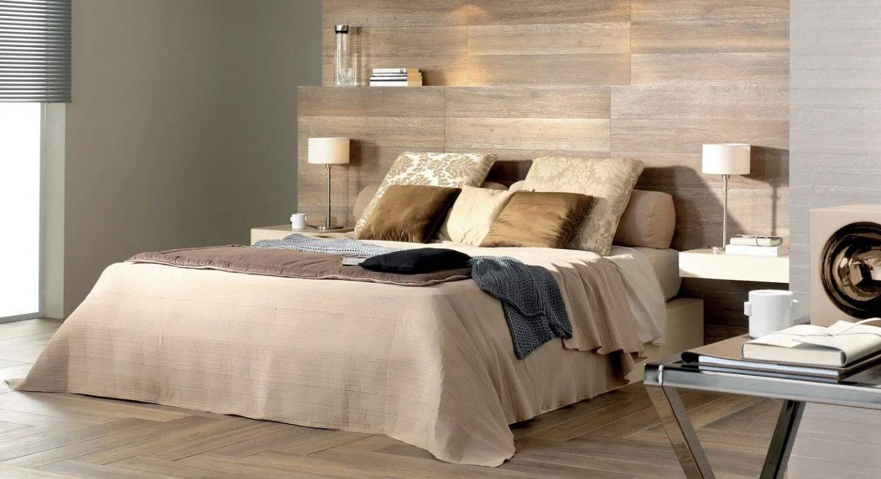 Ламинат на стене в спальне