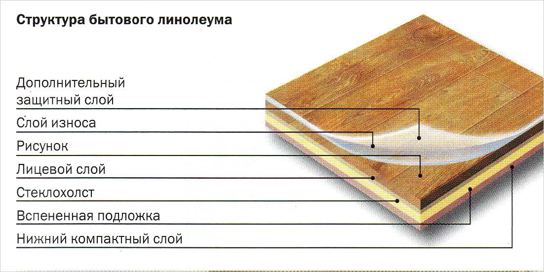 Полукоммерческий линолеум можно считать универсальным материалом, так как его многослойная структура позволяет обустраивать полы пространств жилых и общественных помещений со средним показателем механического воздействия.