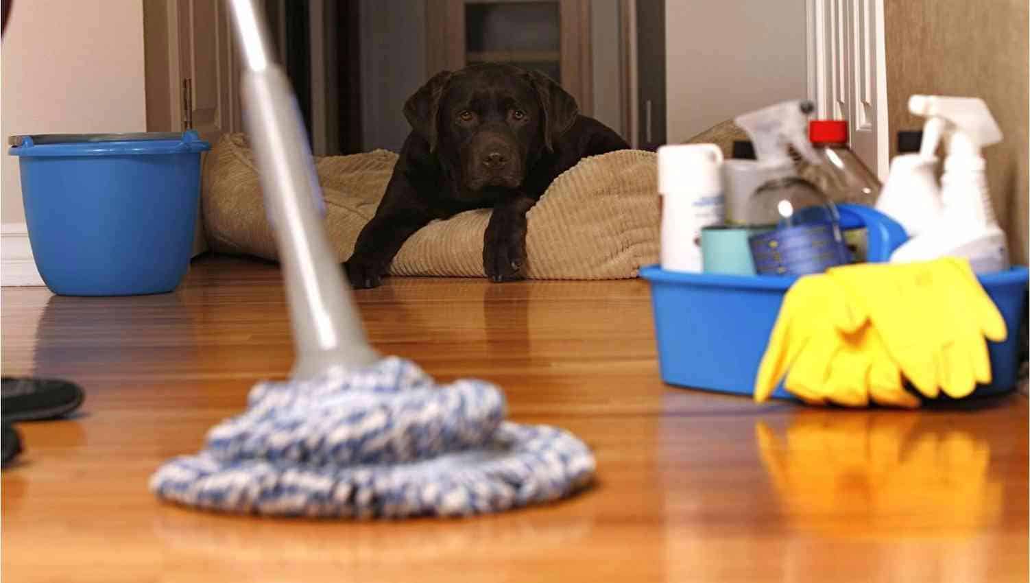 если в доме живет пес, после каждого посещения улицы необходимо мыть ему лапы. А также не забывать о своевременном подрезании когтей у животного, чтобы избежать повреждений на поверхности паркетной доски;