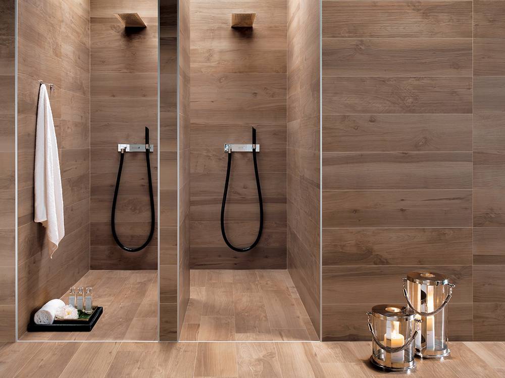 Влажность и перепады температур не позволяют использовать там ламинат и натуральную древесину, но современная плитка создаст полную иллюзию натурального материала, при этом не будет «капризничать» во влажной среде.