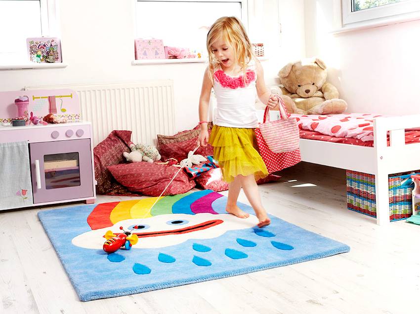 Правильно подобранный ковер делает комнату ребенку уютной и милой